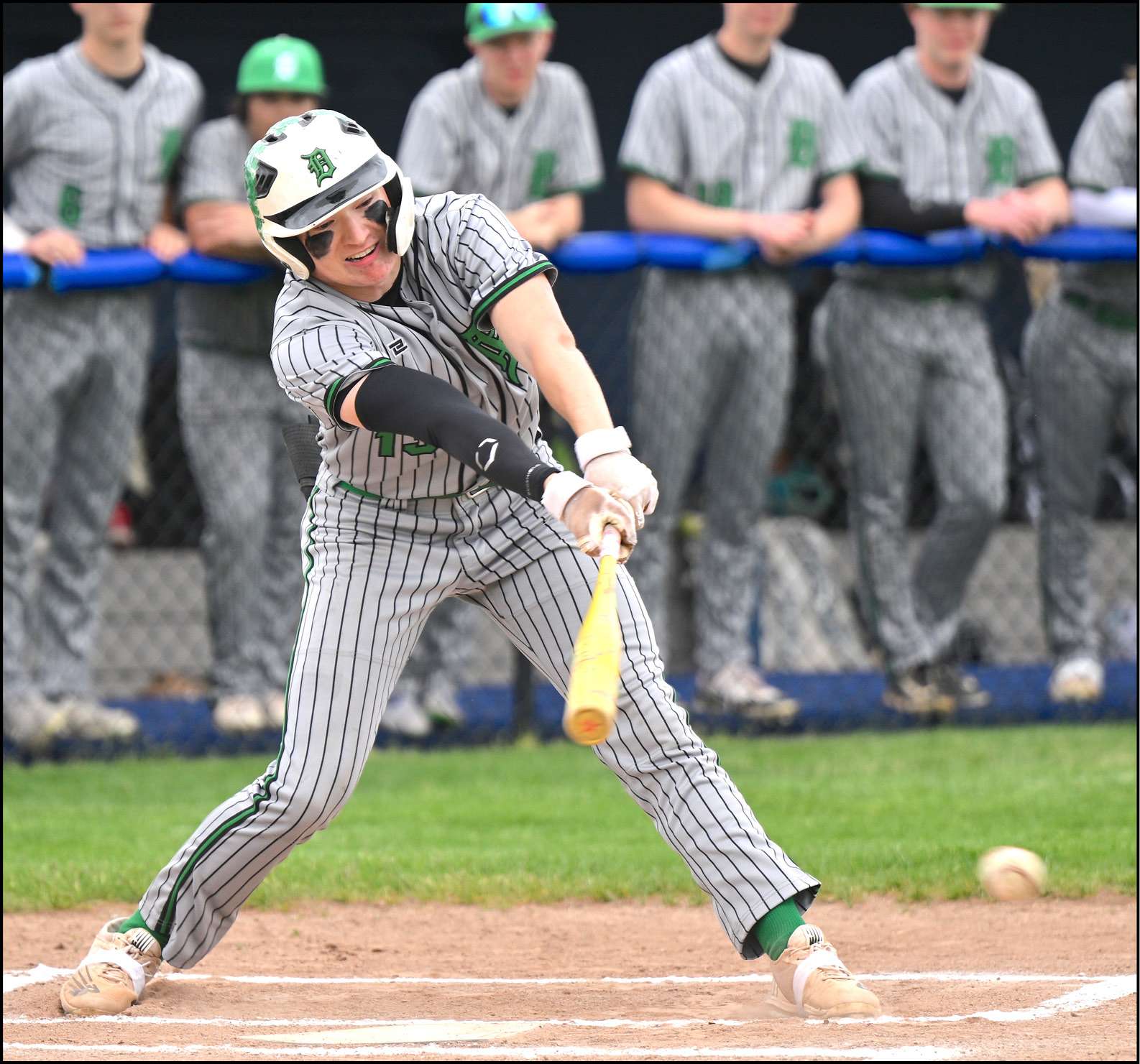 GROUNDBALL OUT … Delta’s Brady Morr reaches out and slaps a groundball to first base in the opening frame of the Panthers game at Montpelier.