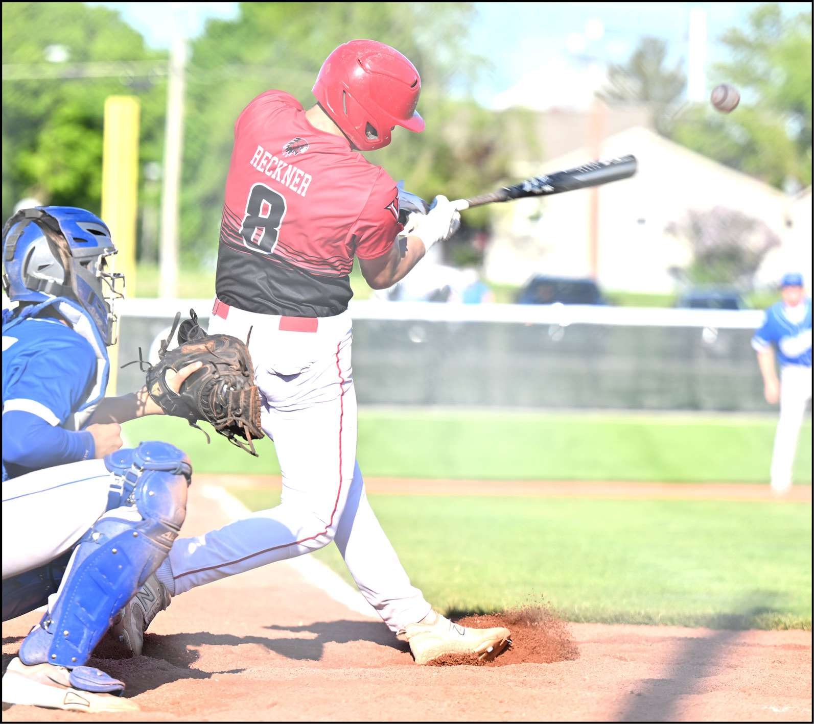 MULTI-HIT NIGHT … Wauseon’s Thad Reckner rips one of his three singles as the Indians racked up 12 hits in a 12-2 win at Edon.