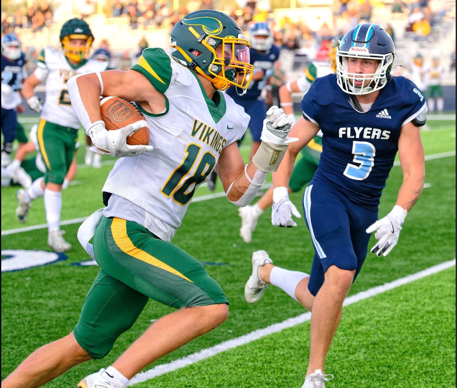 After the Flyers (0-3) had taken a 21-14 lead at halftime, the Vikings answered back with a pair of touchdowns and a field goal.