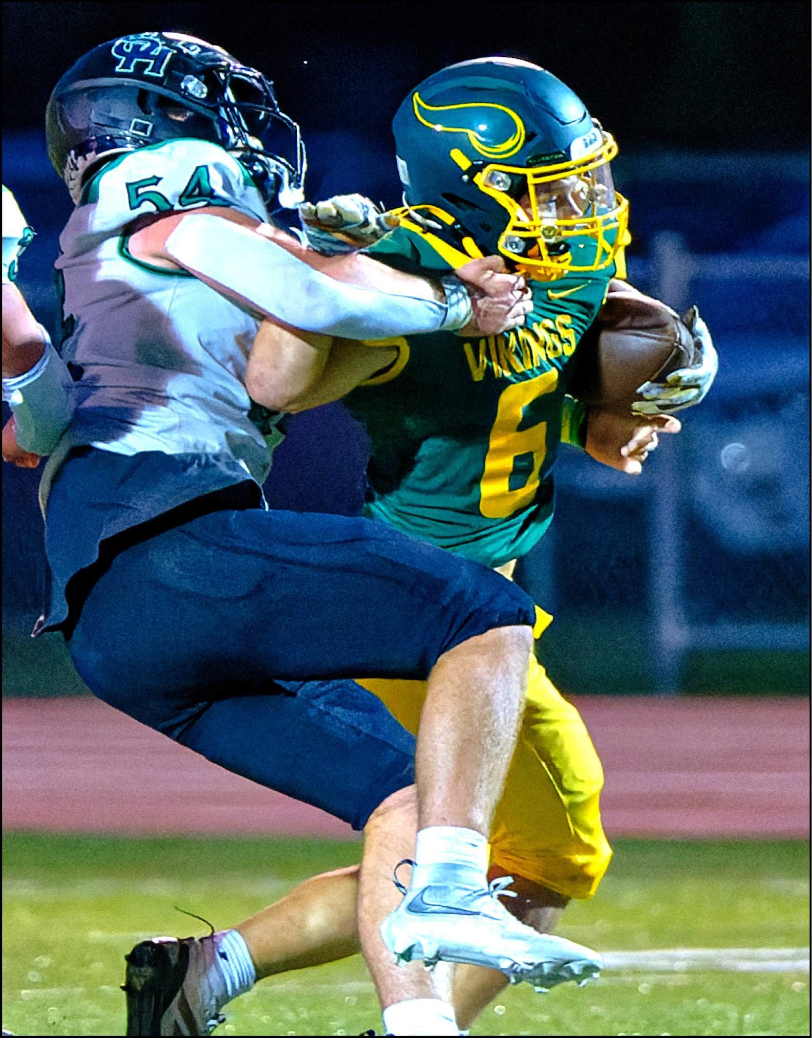 The Viking defense, led by JJ Johnson and Jackson Huffman, who each had multiple tackles for loss, allowed only 116 yards total, 40 of which came on the Bears’ last possession. Evergreen forced three turnovers on the night.