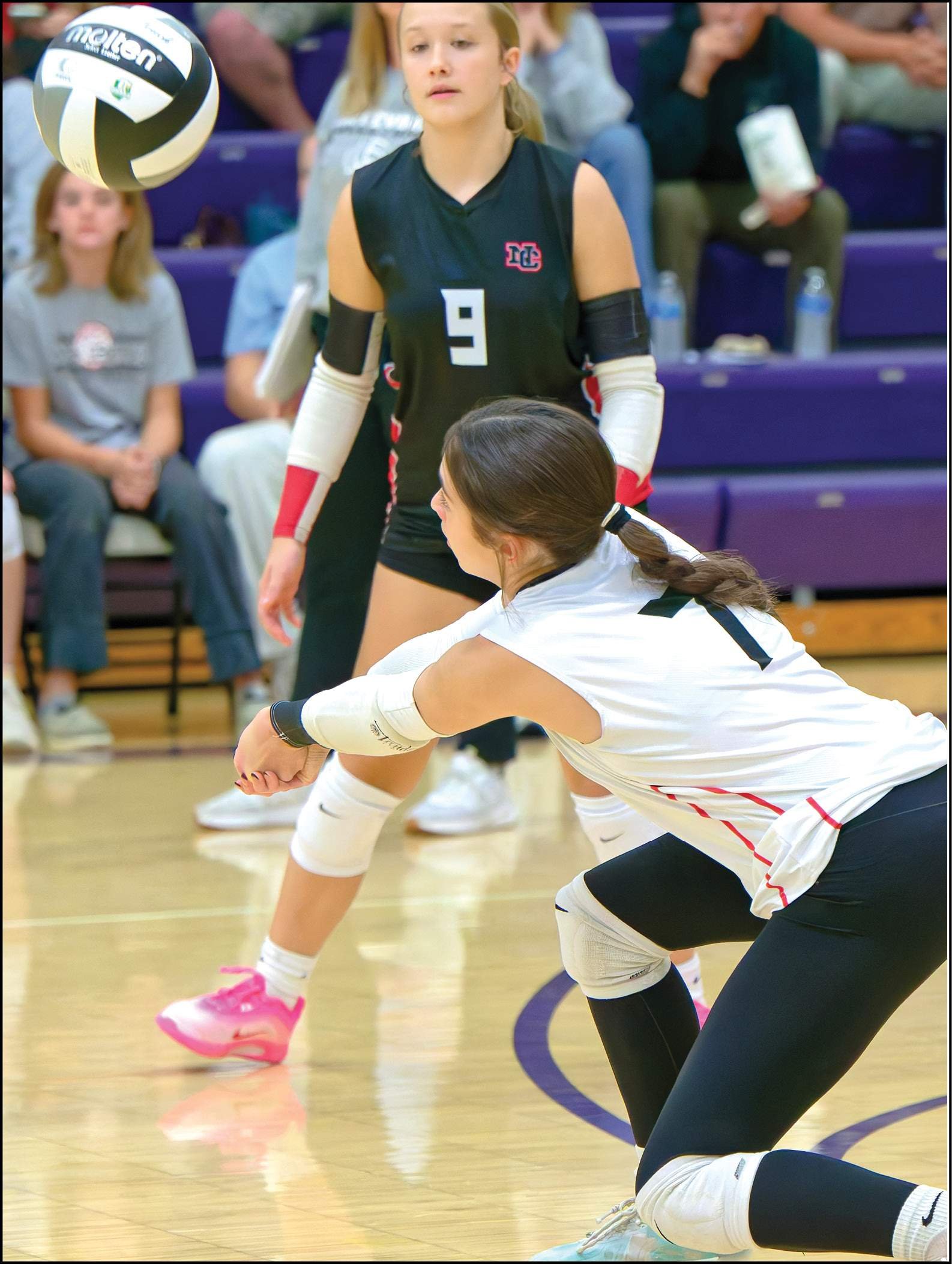 DIG RECORDED … North Central freshman Maycee Walker tallies one of her 21 digs Monay night in a loss at Swanton.