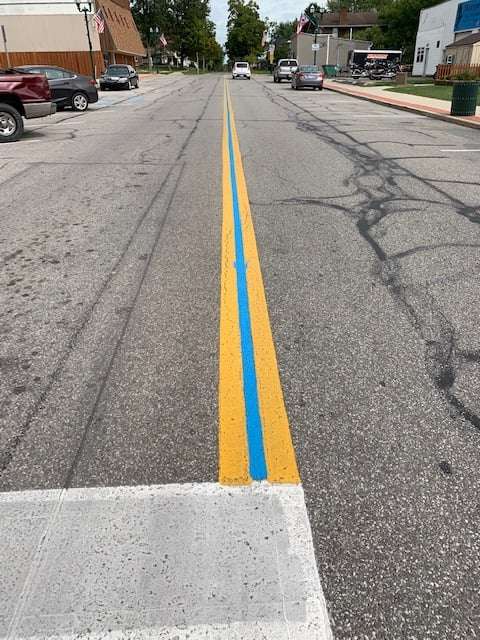 Downtown Pioneer you will notice an important addition to the first block of town regardless if you are headed North, South, East, or West. The double yellow line is to remind you to stay on your side of the road. The center blue line is so residents and non-residents alike will understand without doubt the Village of Pioneer will never defund our Police, Fire or Emergency personnel. We will always respect their service to our community. We will always have their back. We will always be thankful for their dedication. In Pioneer we are blessed with outstanding individuals who work tirelessly year in and year out to keep our community safe and secure. God Bless each and every one of you!