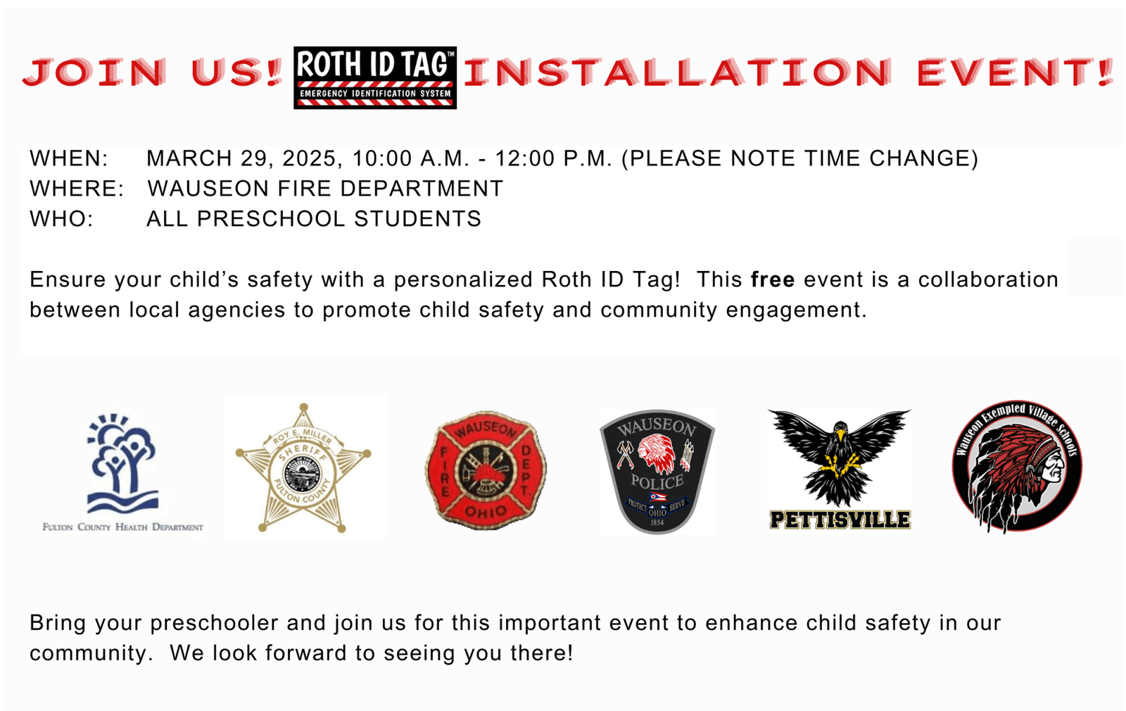 Wauseon Fire Department Hosting Roth ID Tag Installation Event
