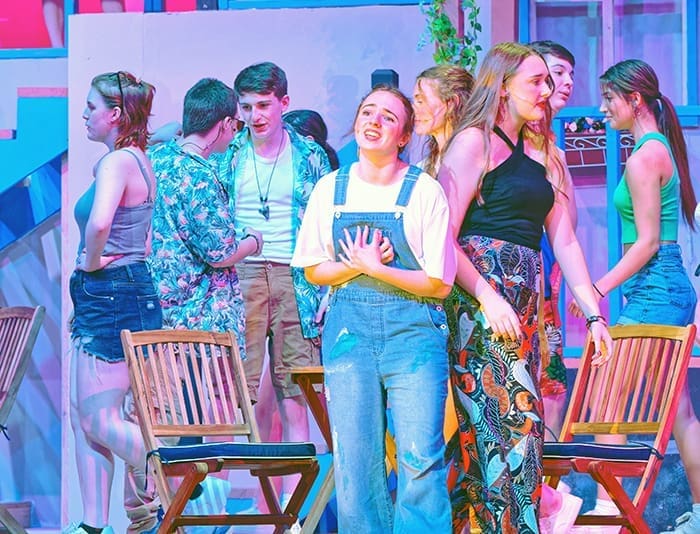 Each of the students performed well and knew their parts. Songs followed the original movie version with tracks like (Honey, Honey), (Money, Money, Money), (Mamma Mia), and (Dancing Queen). The set design was also put together well and helped to tell the overall story.