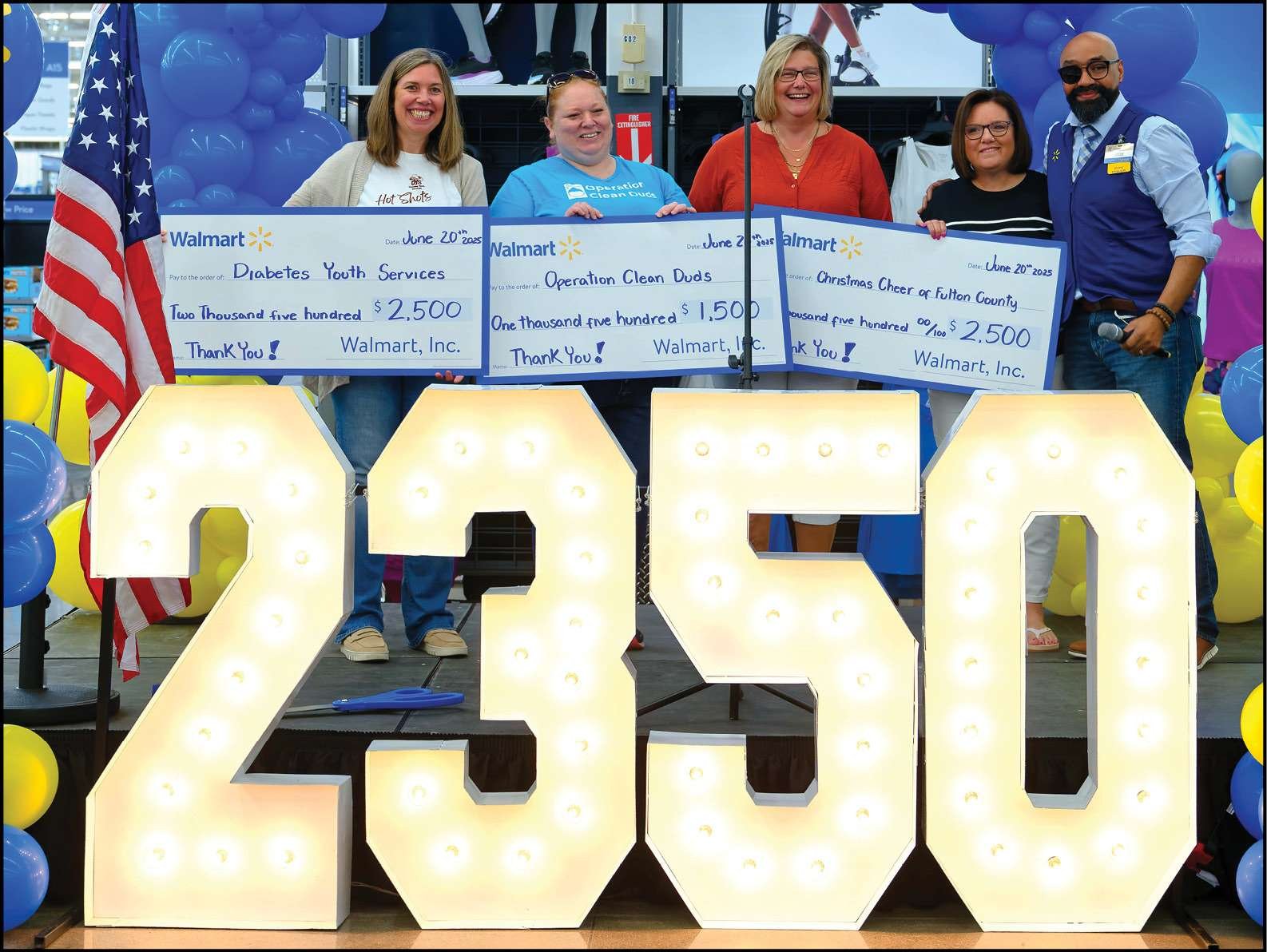CHECKS … Walmart presented checks to local organizations during its grand reopening celebration. Local recipients included Christmas Cheer of Fulton County and Diabetes Youth Services, each receiving $2,500, along with Operation Clean Duds, which received $1,500.