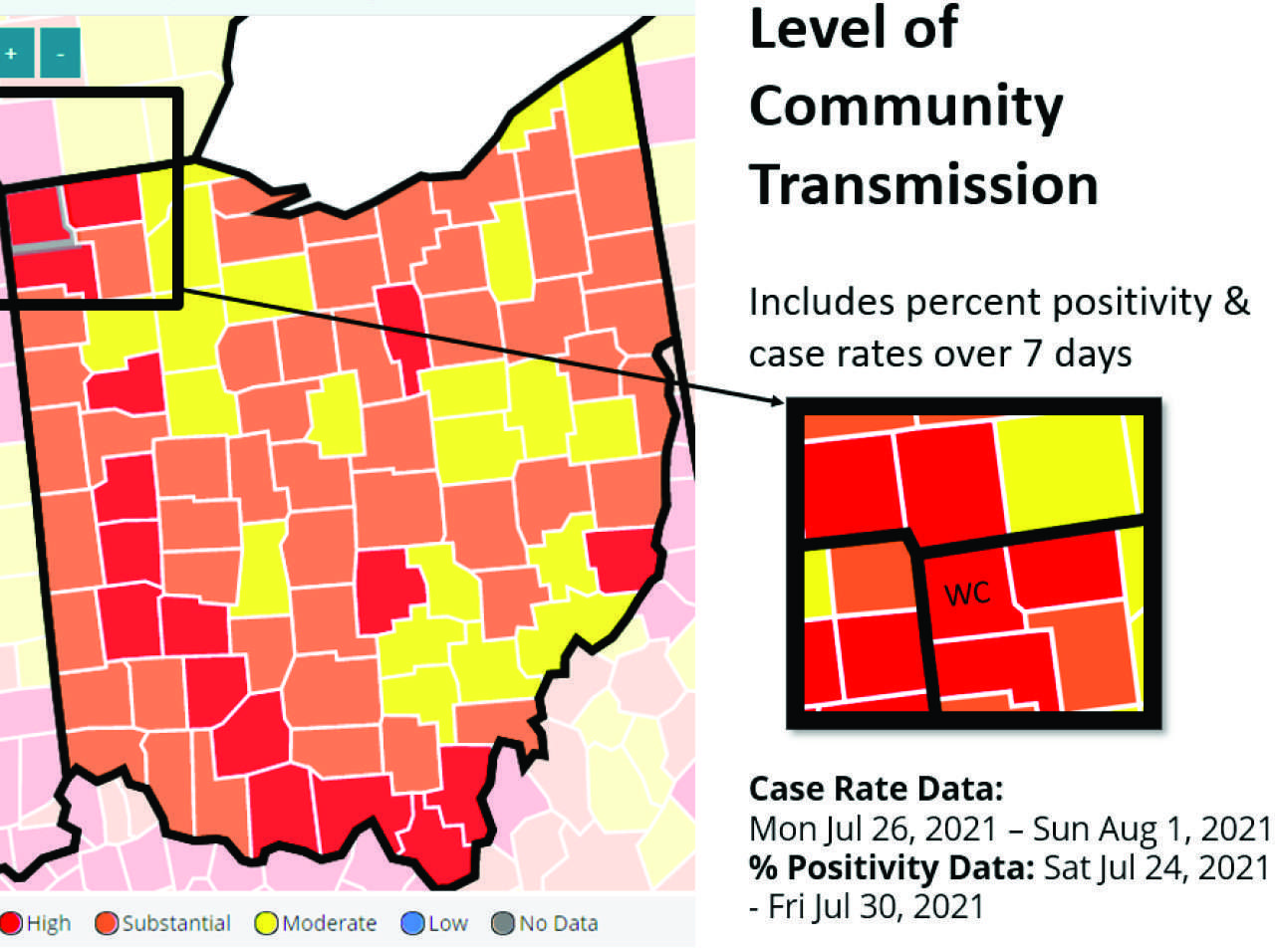 - Williams County is considered Red, or HIGH community transmission.