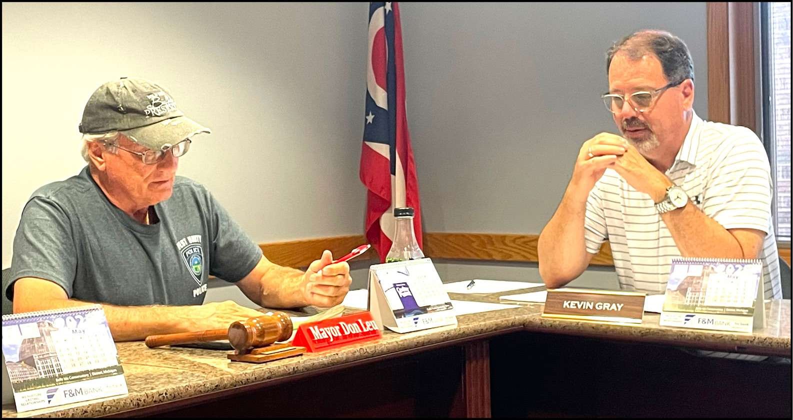 REAL ESTATE DEAL … Mayor Don Leu and Council President Kevin Gray discuss the proposed property trade with the county.
