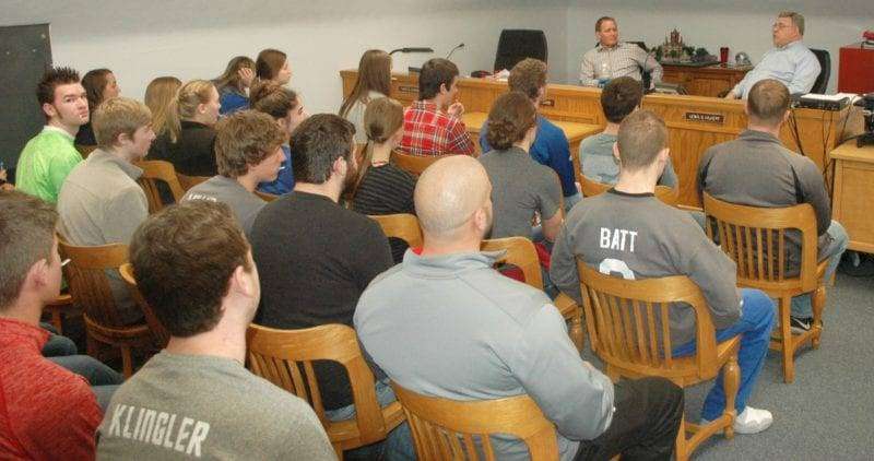 Commissioner Brian Davis explained the county has been hamstrung by the loss of interest income since he came on the board in 2008. Over that time the county has lost $600,000 in annual interest income. Commission President Lewis Hilkert told the students the board may only meet twice a week, but each member has six to eight boards to sit on that keeps them busy.