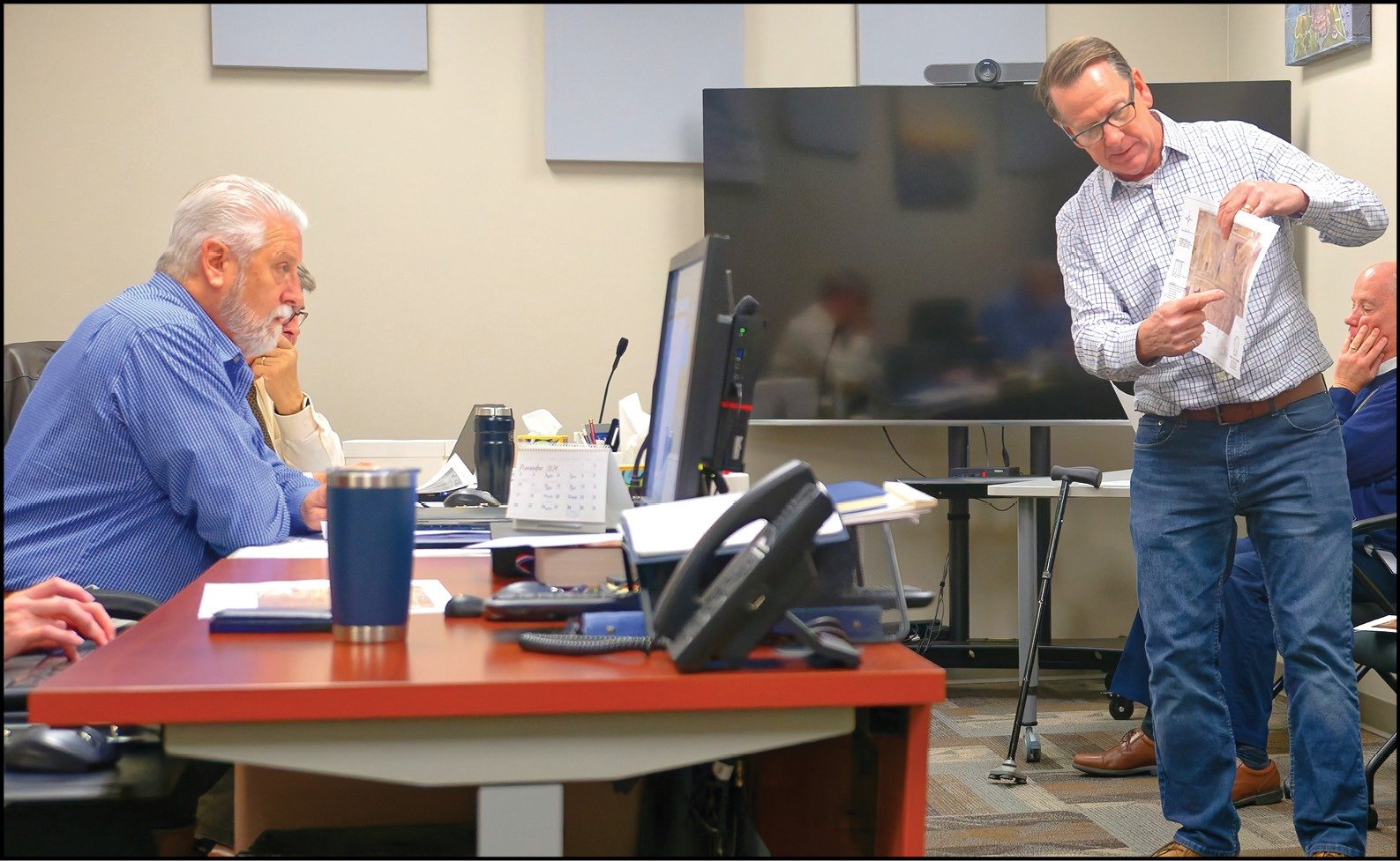 LAND PROPOSAL … Williams County Engineer Todd Roth holds up a map while discussing the proposed trade of parcels between the county and West Unity.