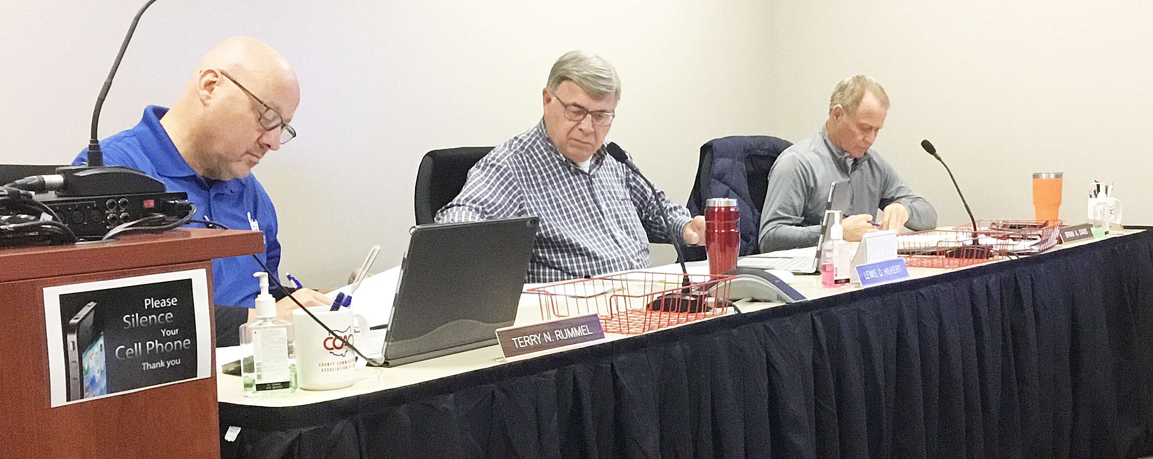SHORT MEETING … Williams County Commissioners Terry Rummel, Lew Hilkert and Brian Davis met for a short regular session, with incoming commissioner Bart Westfall present, on Monday, October 17, 2022.
