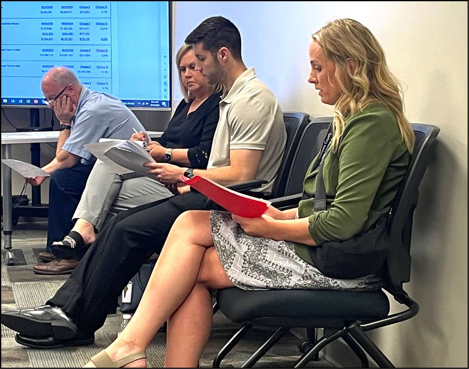 MONEY MATTERS … Job and Family Services Fiscal Officer, Christie Roan, updates commissioners on the continuing budget crisis.