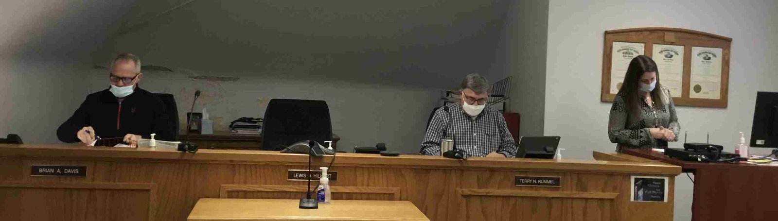 SICKNESS STRIKES … With head colds and possibly COVID hitting the Williams County Commissioners’ office again, Commissioners Davis and Hilkert as well as Clerk, Anne Retcher were garbed in masks at the March 7, 2022 meeting. On Tuesday the Thursday morning meeting for March 10 was cancelled, “due to illnesses in the office.” (PHOTO BY REBECCA MILLER, STAFF)