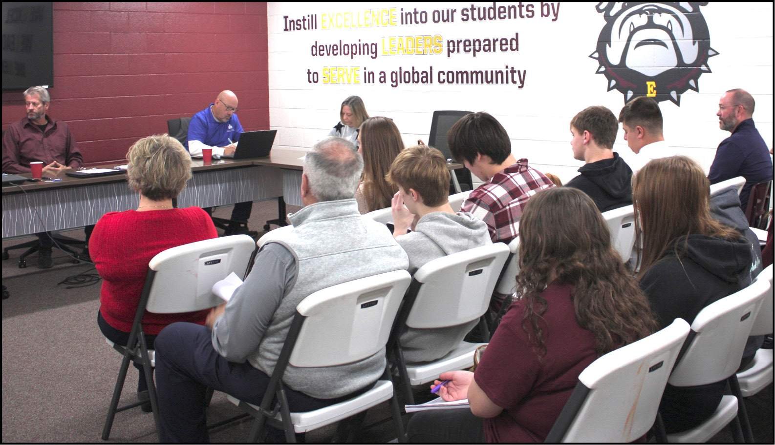 NEW VENUE … The Williams County Commissioners hosted their monthly “Coffee with Commissioners” meeting at the Edgerton Performing Arts Center with local high school students.