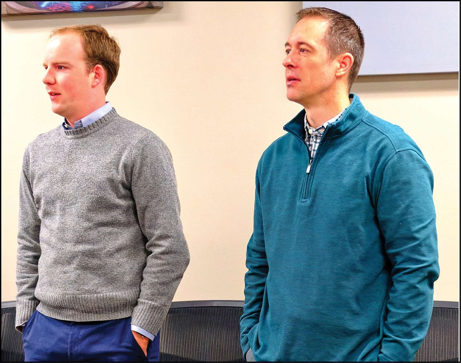 PORT AUTHORITY … Joe Kimball (left) and Tyson Stuckey (right) were sworn in as Port Authority members by Commissioner Rummel during Tuesday’s meeting.