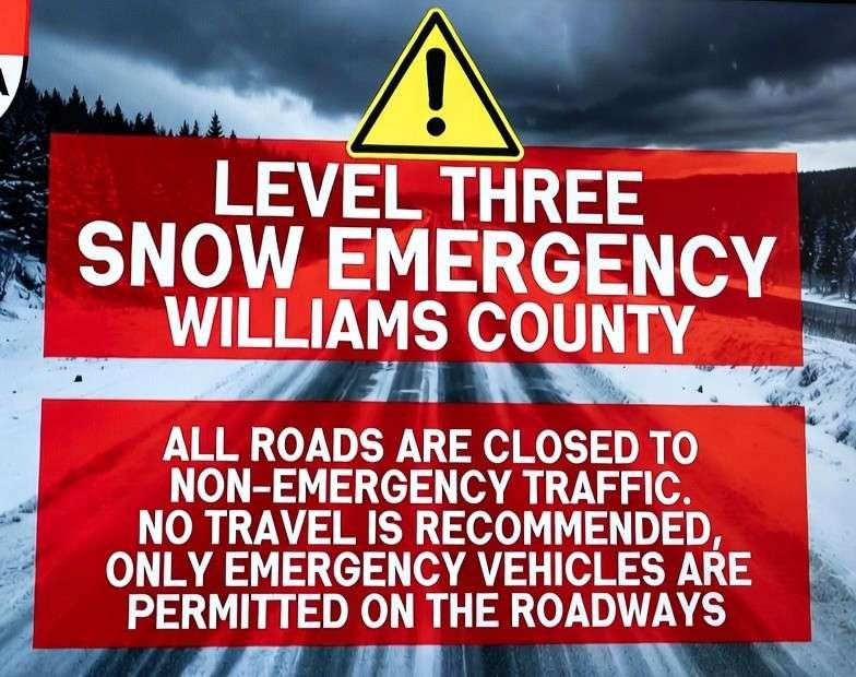 Williams County Sheriff’s Office and local law enforcement stress that these measures are in place to protect both residents and first responders. Plows and emergency crews are working around the clock, but continued snowfall and blowing winds are making clearing efforts difficult.
