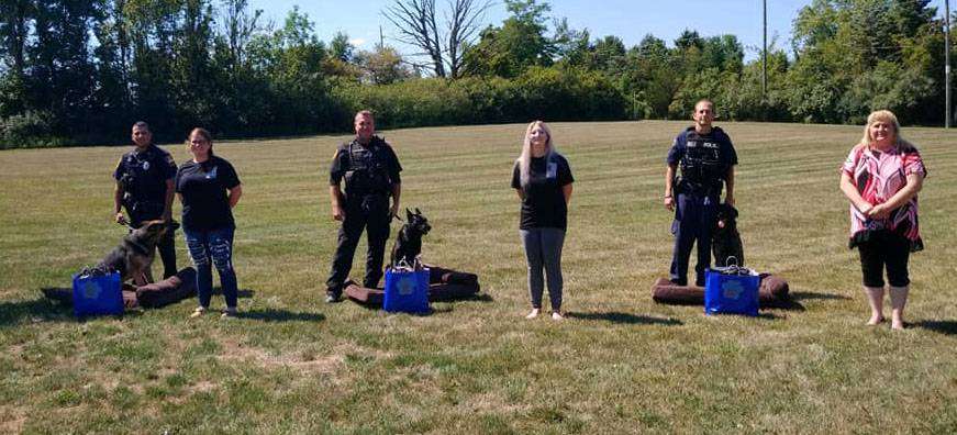DONATION … Pictured: Officer Mendez and Rocco from Stryker, Emily Pearson, dog warden and humane officer, Officer Jacob and Ruin from the Sheriff’s Department, Ashtin Norrick, humane worker, Officer Mercer and Justice from Montpelier, and Cheryl Rowley. Not pictured is Officer Randall and Django from the Sheriff’s Department.
