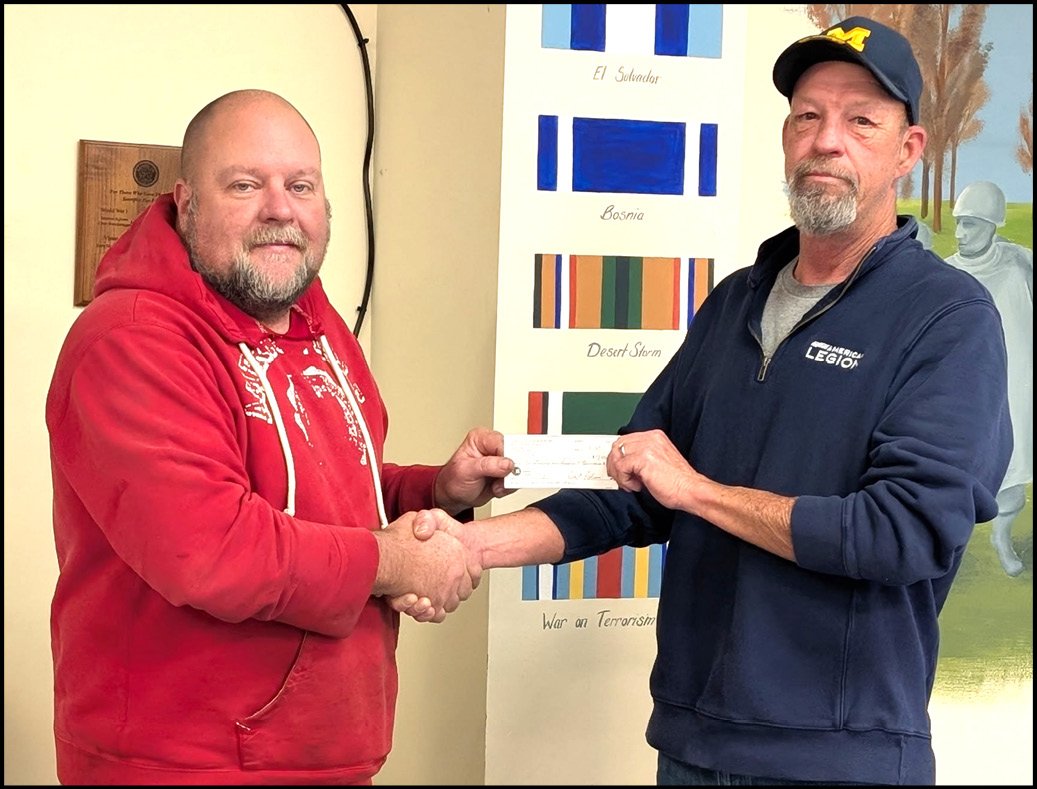DONATION … Tobi Fenicle accepts a $17,500 donation from the Pioneer American Legion on behalf of the Williams County Fair Board.