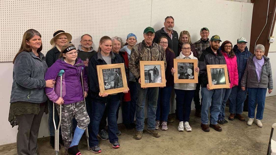 FOUNDING MEMBERS RECOGNIZED … Williams County Fairgrounds held their annual Maple Syrup Educational Day on March 11. Students visited the Sugar Shack to learn about the process of producing maple syrup as well as a living history lesson that followed. In between two groups of school children a Memorial Plaque Presentation for the founding members of the Northwest Ohio Maple Syrup Producers, Don Martin; Tim Creek; Dallas Dick; and Leon Shoup, who passed away this past year, was held. Pictured are Front Row: Hazel King, Tabitha (Fritsch) Crites, Lamar Dick, Lori Shoup, Rex Martin, & Nancy Martin. Back Row: Sasha (Creek) King, Pat Creek, David Fritsch, Susan (Creek) Fritsch, Linda Tomkalski, Holly Tomkalski, Lane Shoup, Wendy Pharo, Jeff Dick, Adrianna Martin, & Jeff Martin. (PHOTO BY TABBY DUNBAR, STAFF)