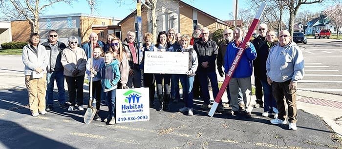 The Bryan Area Foundation (BAF) presented Habitat for Humanity of Williams County (HFHWC) (Ohio) with a $33,000 grant to help them construct a new house at 202 South Cherry Street. The property, donated by Faith United Methodist Church, is currently an empty parking lot, but in a few months, will be home to Kristin, Stella, and Steven Peet. This will be the 37th dwelling HFHWC (Ohio) has built, and it is only possible because of the incredible support of numerous local organizations and volunteers. Pictured during the groundbreaking ceremony are left to right HFHWC (Ohio) volunteer Lyntha Collins, HFHWC (Ohio) Board President Steve Collins, First Presbyterian Church volunteer Marilyn Scott, future residents Stella, Steven, and Kristin Peet, HFHWC (Ohio) Board members Duane Knisely and Lisa Wert, HFHWC (Ohio) Build Chair Ross Widney, HFHWC (Ohio) Board Member Dawn VanHorn, Bryan Area Foundation Director of Communications and Programs Jenny Horn, HFHWC (Ohio) volunteer Jennifer Vetter, HFHWC (Ohio) primary and Mark It Done contractor Mark Vetter, HFHWC (Ohio) Executive Director Mary Ann Peters, HFHWC (Ohio) volunteers John Kurtz and Bradley Plummer, Faith United Methodist Church Pastor Eric Dailey, Faith United Methodist Church Trustees Doug Saul and Steve Casebere, and HFHWC (Ohio) volunteers Michelle Law and Jack Sigler.
