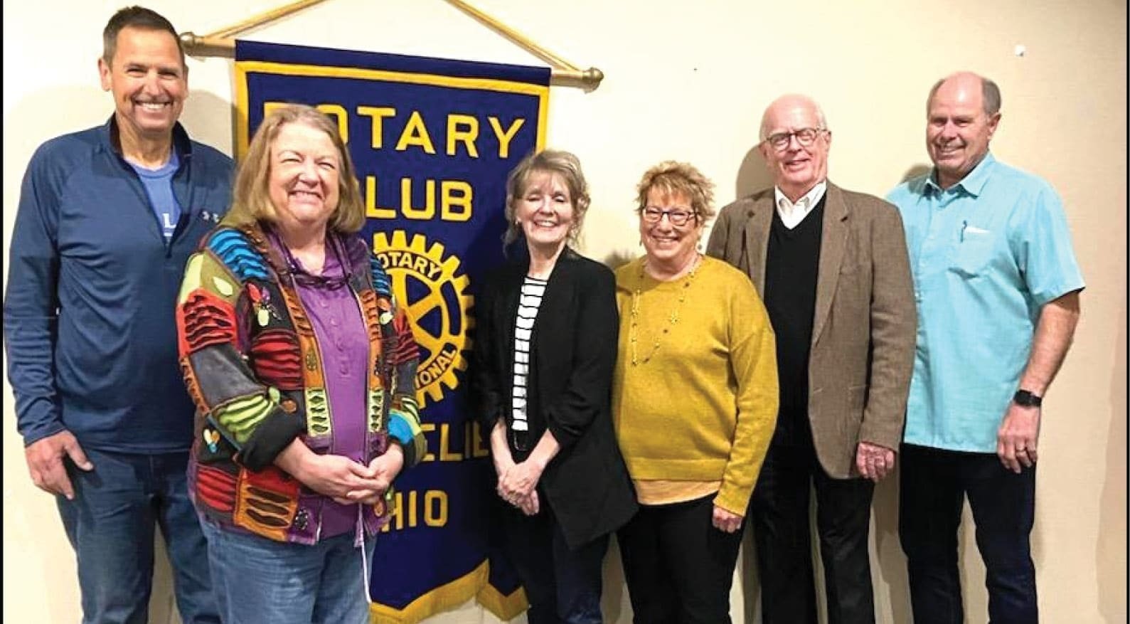 MEETING GUESTS … Williams County Habitat for Humanity attended the latest regular meeting of the Montpelier Rotary. Habitat for Humanity is represented in 1,400 communities in 70 countries and has helped nearly 13.4 million people. Williams County Habitat was established in 1991 and recently completed their 37th home. Habitat presenters were the guests of Mike Carroll (left) and included (L-R) Lisa Wert (board member and volunteer), Mary Ann Peters (executive director), Roz Wendorf (board secretary), Michael Cox (board member, communications). Club President Mike Moore (right) thanked Habitat representatives for their valuable work in our community!