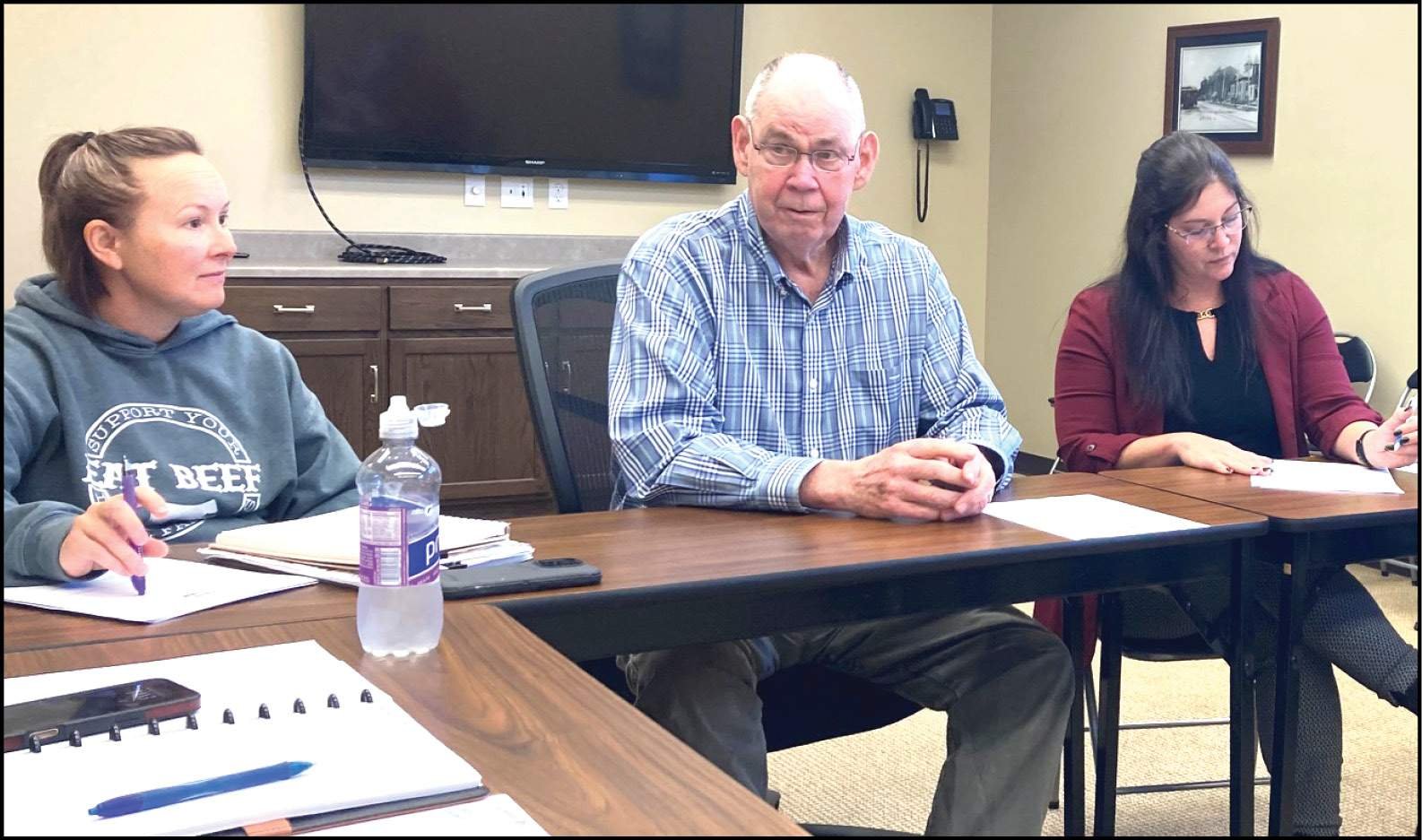 OFFER … Williams County Port Authority board members from left, Rachel Walz, Glen Newcomer, and Ashley Epling discuss the offer being made on a duplex house in Edgerton on Monday, September 8.
