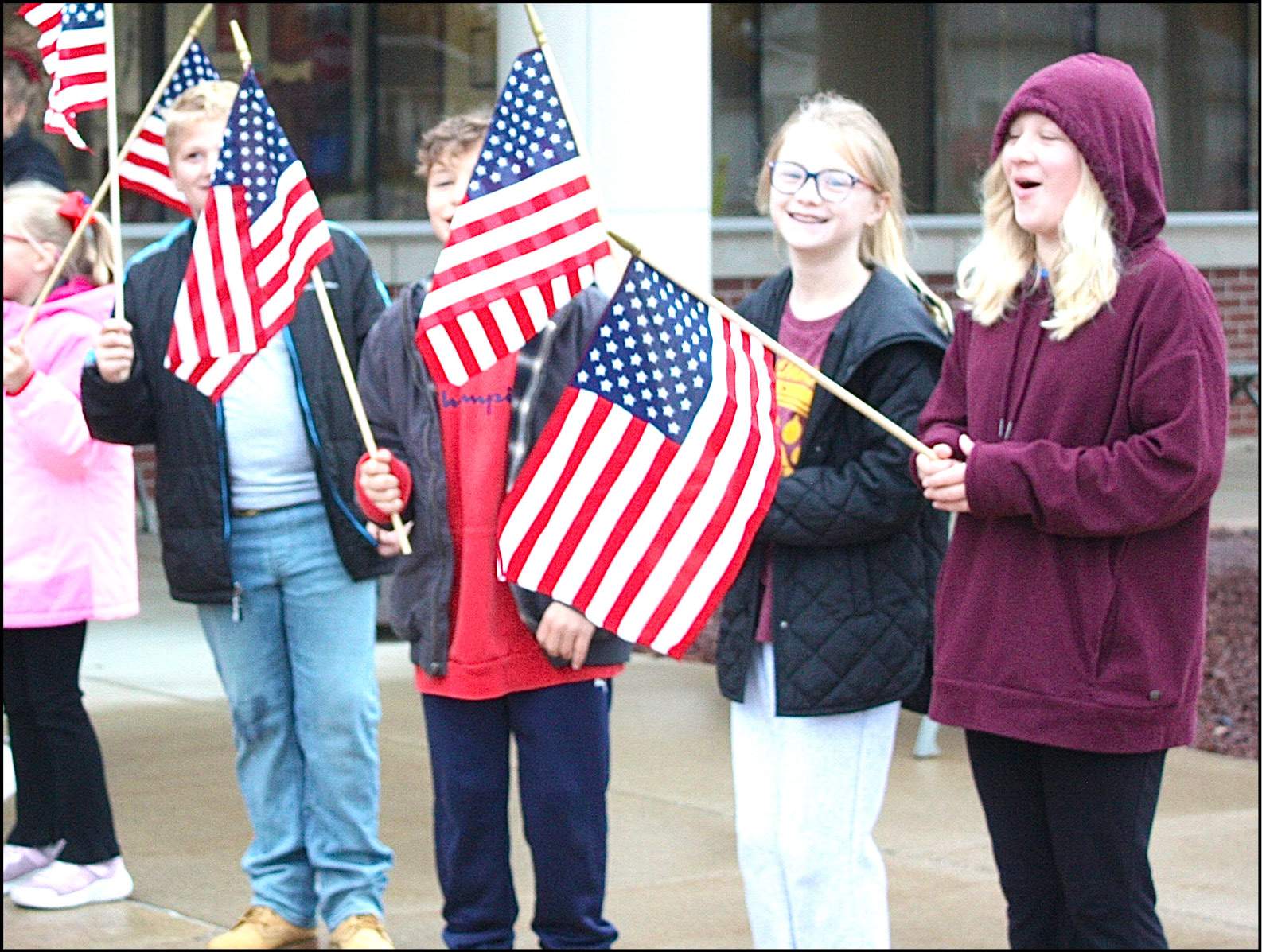 WARM WELCOME … Edgerton third graders lined the sidewalks to welcome veterans as they entered the 2025 Veterans’ Day Celebration.