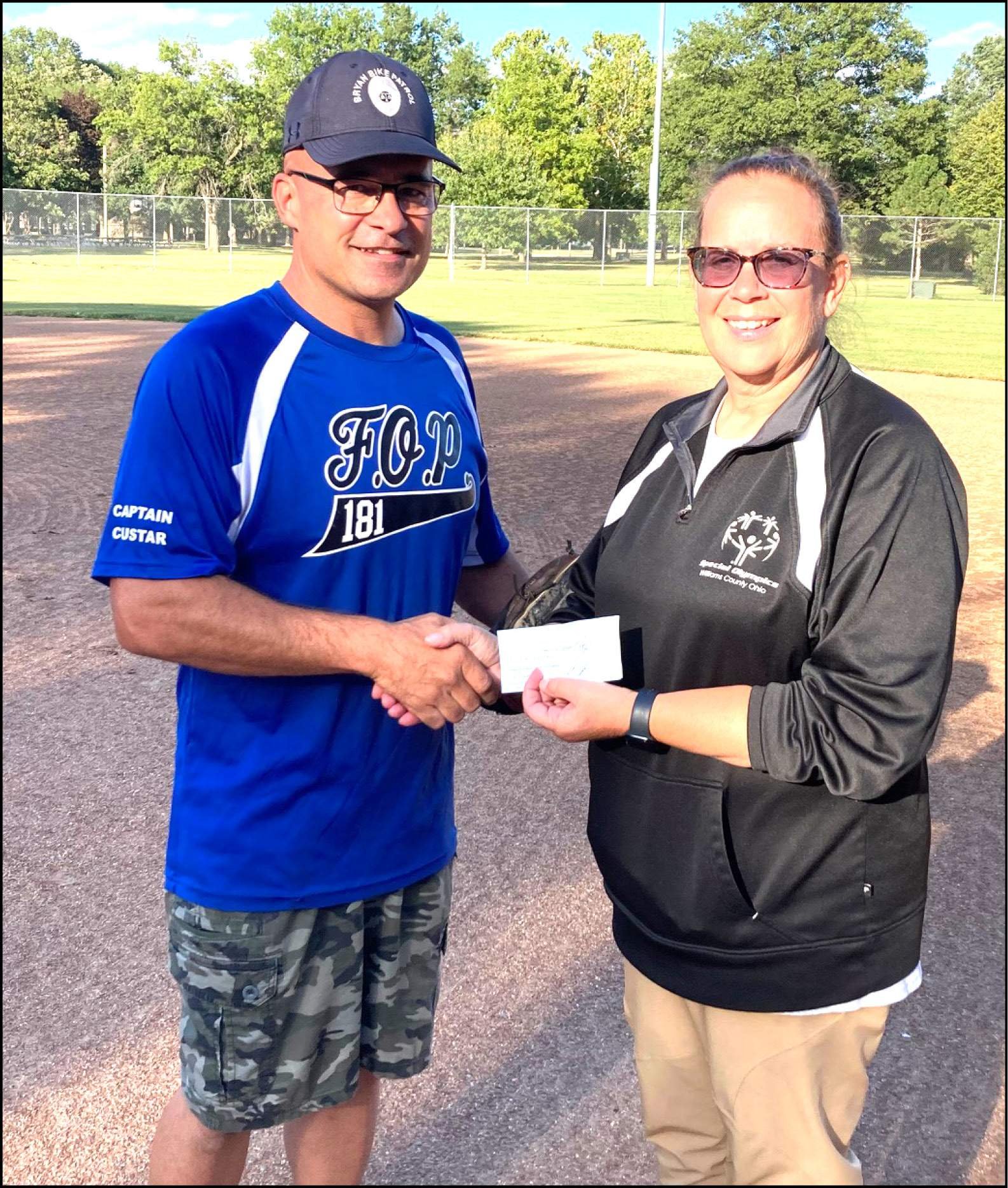 SPECIAL OLYMPICS DONATION … The Williams County Special Olympics was presented with a $500 donation from The Fraternal Order of Police Captain Custer Lodge, 181, on Thursday night. Presenting the check to Angela Luke, Williams County Special Olympics coordinator (right), is Jeremy Viers (left) of the Bryan Police Department.