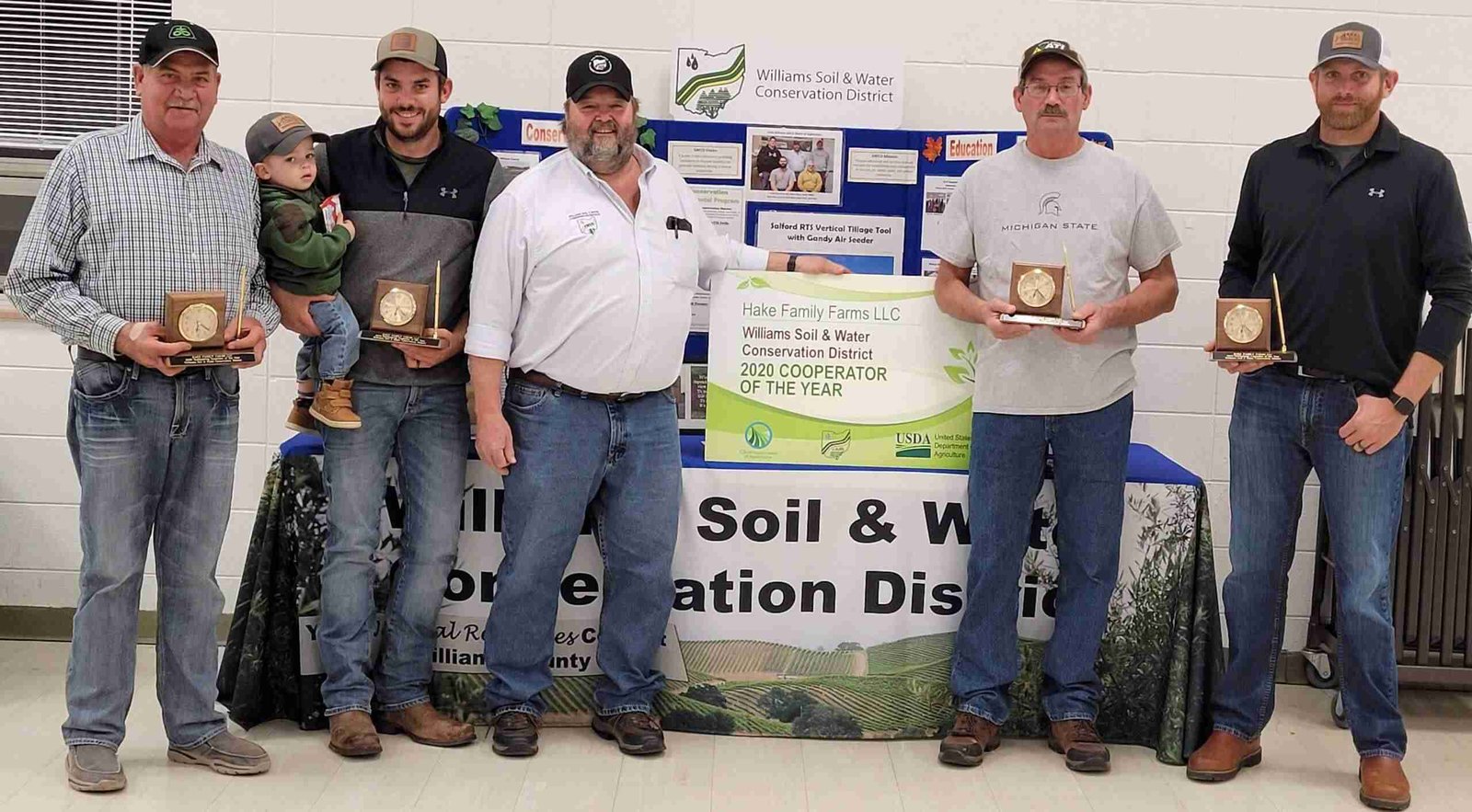 Bob Short, Williams SWCD Supervisor Chairman, presented the 2020 Outstanding Cooperator of the Year award to Hake Family Farms LLC (Terry, Jon, Travis and Tyler) for the conservation practices they have placed on the land.