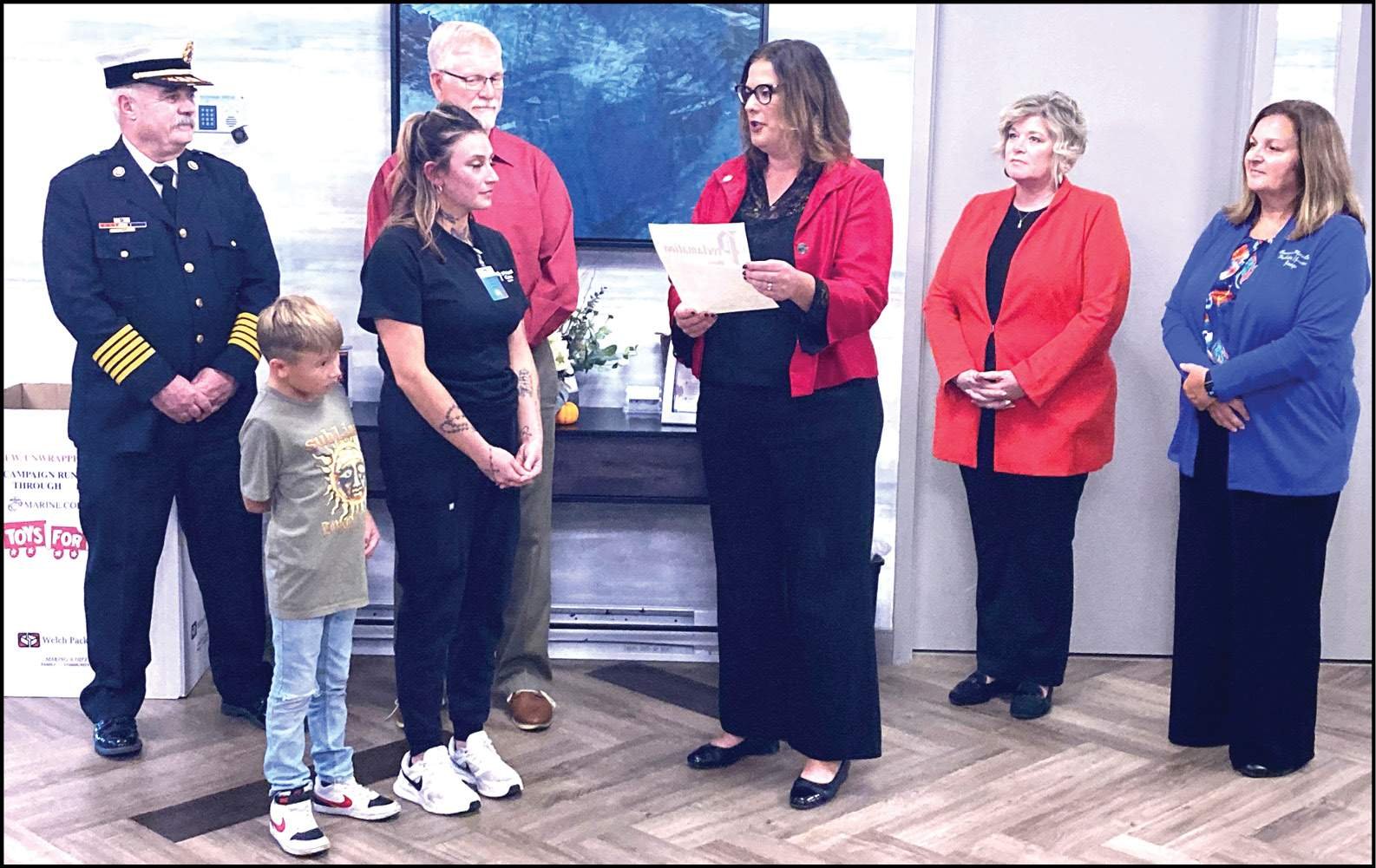 In reading the proclamation, Schlade said Kelley courageously entered the danger zone, located Mr. Ogle, and dragged him to safety and which would save his life.